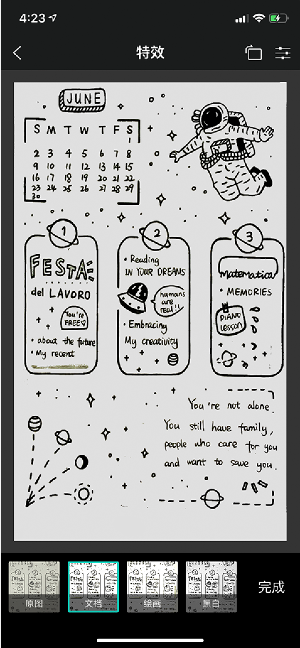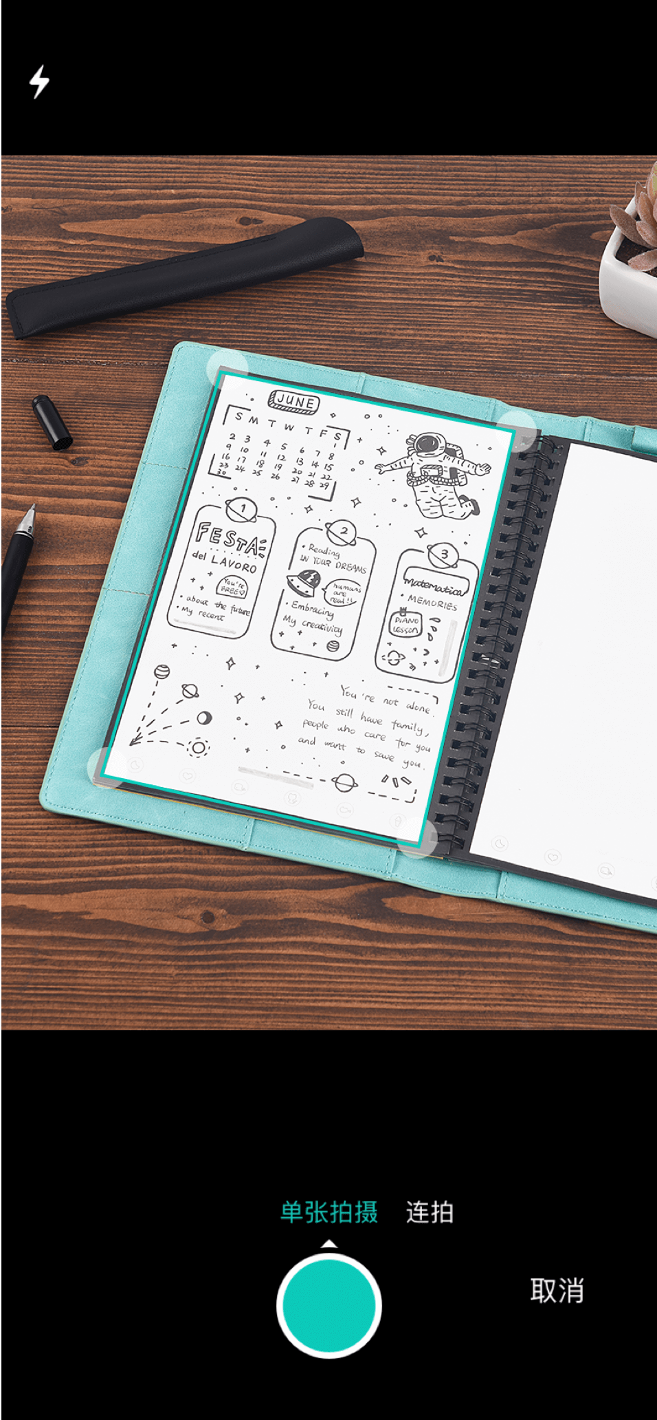使用手机扫描拍照,自动识别边框,连续拍摄简单高效,轻松收集资料,媲美高性能扫描仪。
